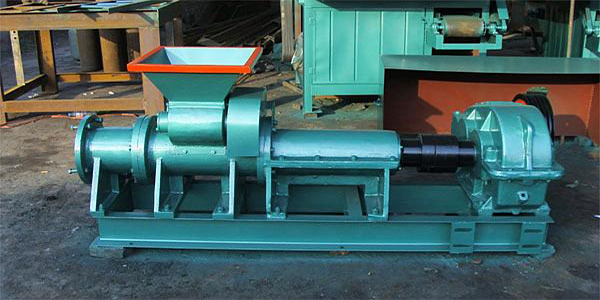 煤棒機是將粉末狀原煤制成不同形狀條形塊的機具。其工作原理是:電動機經(jīng)三角帶把動力傳給變速器,變速器輸出軸通過浮動聯(lián)軸器把動力傳給推進軸,推進軸上的推進其推動煤料經(jīng)成型模頭推出,便產(chǎn)生出理想的高壓煤棒。