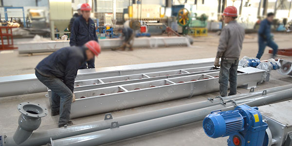 螺旋輸送機的工作原理是旋轉的螺旋葉片將物料推移而進行螺旋輸送機輸送,使物料不與螺旋輸送機葉片一起旋轉的力是物料自身重量和螺旋輸送機機殼對物料的摩擦阻力。螺旋輸送機旋轉軸上焊的螺旋葉片,葉片的面型根據輸送物料的不同有實體面型、帶式面型、葉片面型等型式。螺旋輸送機的螺旋軸在物料運動方向的終端有止推軸承以隨物料給螺旋的軸向反力,在機長較長時,應加中間吊掛軸承。