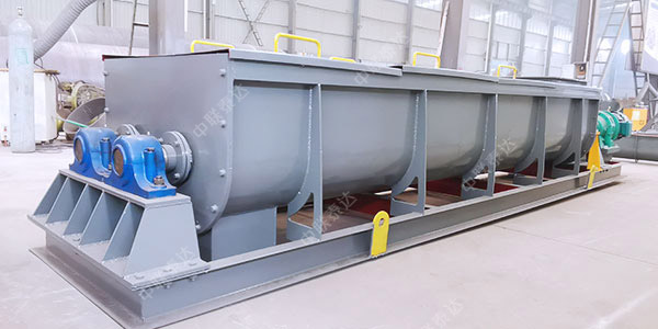 雙軸攪拌混合機機利用兩根呈對稱狀的螺旋軸的同步旋轉,在輸送干灰等粉狀物料的同時加水(或者粘接劑)攪拌,均勻加濕混合干灰粉狀物料。用于增濕作用時,可以達到使加濕物料不冒干灰又不會滲出水滴的工藝目標,從而便于加濕灰裝車運輸或轉入其它輸送設備;用于混合作用時,可以達到粘接劑和干料的均勻混合,還可以多級串聯使用,或和其他混合設備組合應用。 主要適用于火力發電廠、礦山等行業。