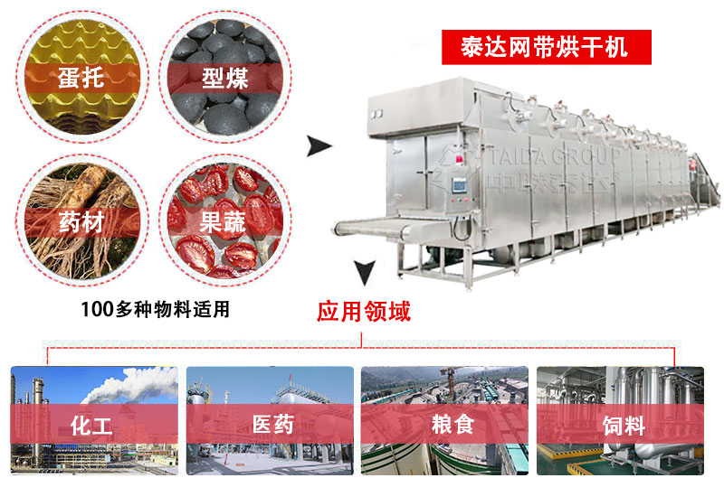 【產(chǎn)品介紹】: 網(wǎng)帶式烘干機(jī)用于烘干脫水蔬菜、顆粒飼料、中藥材、金銀花、果脯、蛋托、型煤、球團(tuán)等物料。